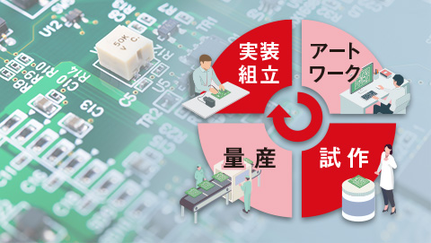 基板設計から量産・組立までをワンストップで対応し、お客さまのモノづくりをサポートしています。